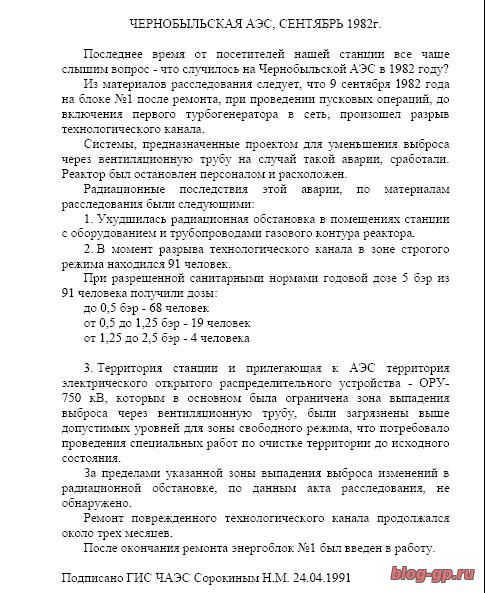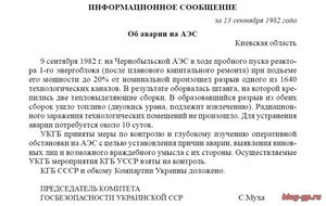 2) УКГБ, который специально следит за этой аварией с самого первого дня, почему-то проходит мимо этих преступных действий. И никаких версий о диверсии и даже уголовном преступлении по халатности не появляется. Вот как выглядит авария в их изложении (это докладная записка в ЦК КП Украины) :