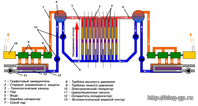 Схема реактора РБМК-1000. Иллюстрация с сайта www.spazint.ru