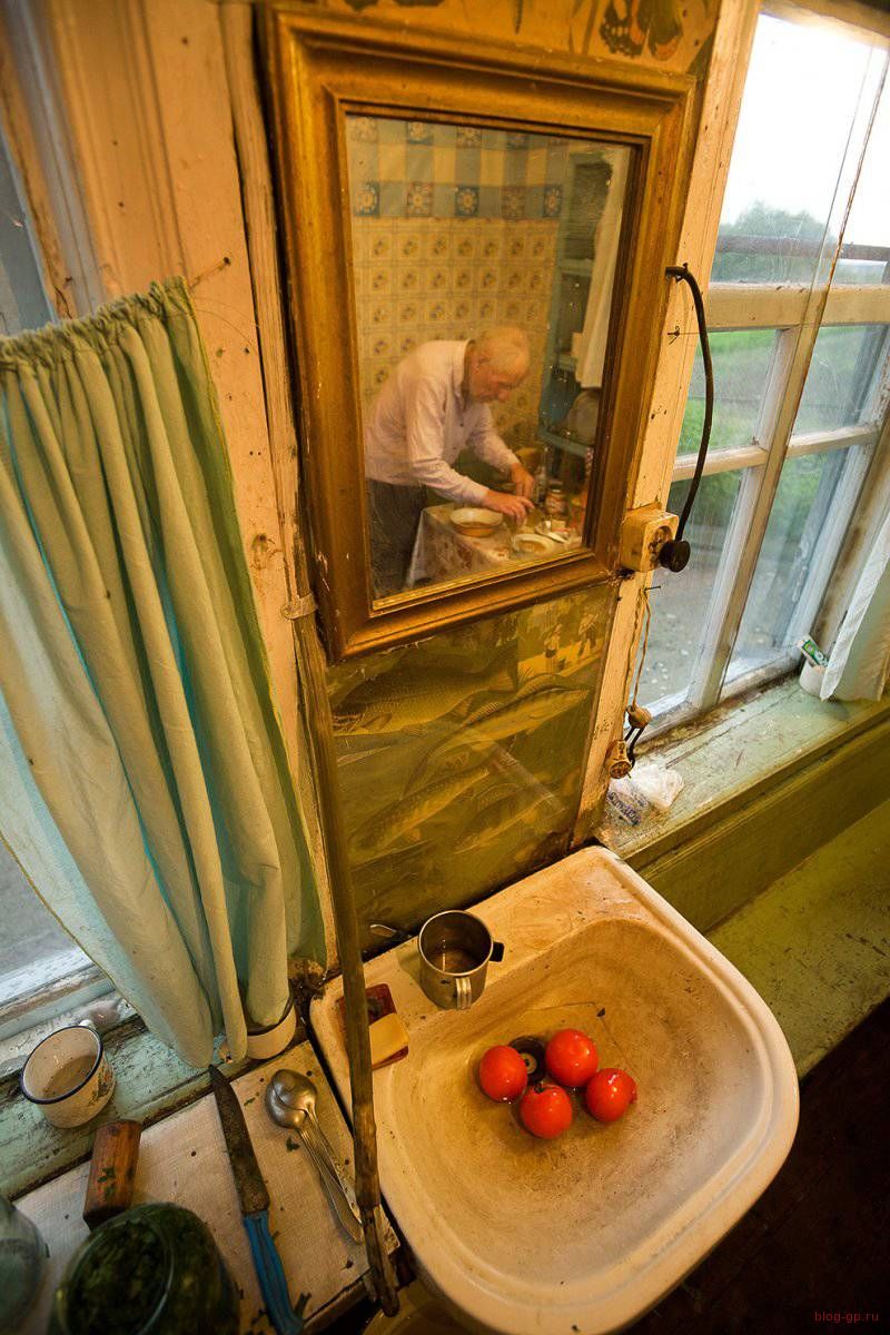 16. Выросшие на собственном огороде помидоры моют в раковине в доме слабослышащая пара - семидесятисемилетний Иван Мартыненко, и 82-летняя Гапа Семененко.. После эвакуации несколько сотен пожилых людей впоследствии вернулись в свои прежние дома, питаясь в основном овощами и фруктами, которые выросли на загрязненной почве. Ильинцы, Украина, 2005 год.
