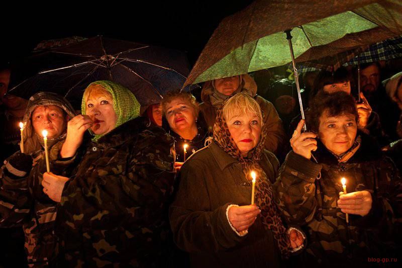 23. Каждый год 26 апреля в полночь проходит бдение у памятника пожарным в Чернобыле – в память погибших в результате взрыва. Двое рабочих завода погибли сразу во время взрыва, и еще 28 рабочих и пожарных вскоре умерли в результате радиационного отравления. Тысячи людей с тех пор умерли от рака, и социальных потрясений, которые были вызваны массовыми переселениями. Чернобыль, Украина, 2005 год.