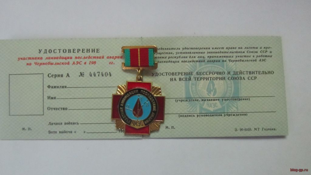 Удостоверение и медаль ликвидатора катастрофы советского образца. Действует на всей территории СССР