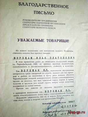Хотелось затронуть ещё один момент. Все мы там работали не за награды и не за славу, но в душе каждый ждал, что его похвалят и скажут спасибо. Обычно на праздник так и происходит, и все ждали приближения 23 февраля. И вот, на мой взгляд, была допущена одна ошибка, которая омрачила этот праздник. Офицерами накануне праздника был кинут клич – пишите свои пожелания, кто что хочет получить, какое поощрение. И все кинулись писать. Но разве так делается в армии? В итоге получили конечно же не то, чего ожидали. Мне вручили благодарность, а вот старший смены с АБК-1, который был в дружеских отношениях с офицерами нашей роты, потому что они постоянно находились там, получил медаль. Также и после Чернобыля – ордена и медали выдавались в первую очередь членам актива. Среди личного состава шли разные слухи о льготах, которыми мы должны были пользоваться дома, но что это за льготы, никто не знал. Нам выдавали справки, что мы должны пользоваться льготами за номером таким-то и таким, но расшифровки этих льгот не было. Мы вынуждены были бегать в штаб 25 бригады, где нам разъяснили все наши льготы, но официальной бумаги – распечатки льгот, так и не дали.