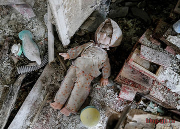 Это куклы из школ, детских садов, больниц. Они здесь остались, когда город был эвакуирован в 1986 году.