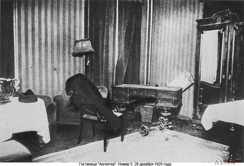 В ночь с 27 по 28 декабря 1925 года Сергей Есенин был убит. Его тело обнаружили в пятом номере отеля «Англетер». Следствие назвало причину смерти – самоубийство.