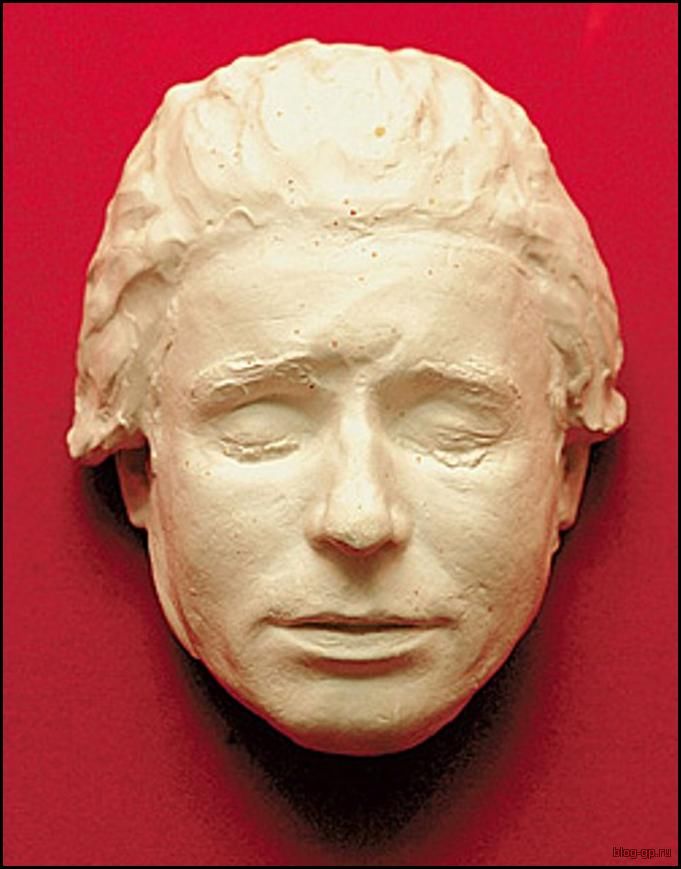 Посмертная маска Есена. Вмятина от удара на лбу у переносицы явно заметна