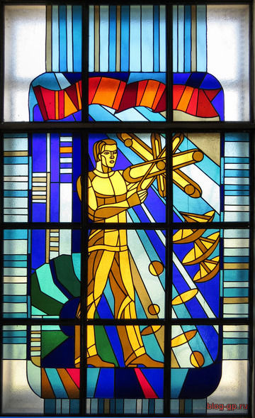 Все работы выполнялись самостоятельно, начиная от погрузки ящиков со стеклом, заканчивая плавкой свинца в муфельных печах, надышавшись парами которого мастер потом ходил сам не свой. Забавно, что народ на станции откуда-то прознал, что художнику выдали 300 килограммов свинца в виде мешочков с охотничьей дробью и до окончания всех работ за мастером ходили охотники и рыбаки с просьбами поделиться богатством.
