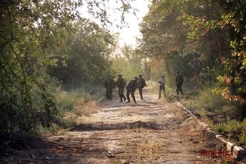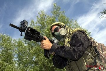 Андрей с навыками настоящего солдата надевает на себя снаряжение и экипировку. Обвес в сумме выходит около 15 килограммов, плюс жара около 37 градусов и близость противника заставляют перенестись в нереальный мир, кишащий опасностями.